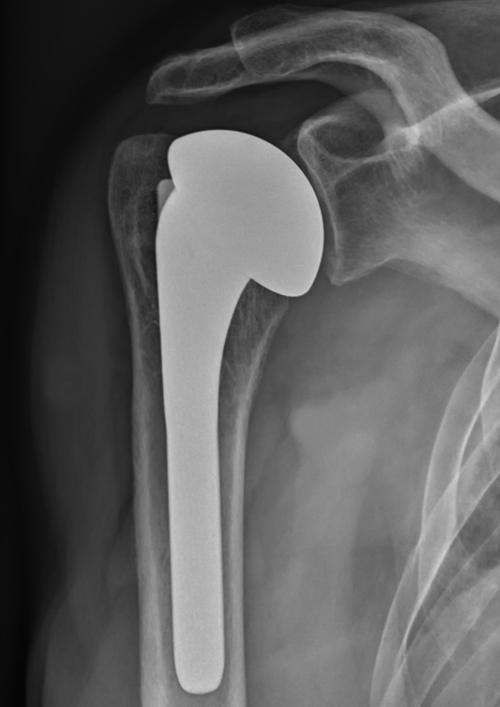 - La tête de l’humérus par une pièce sphérique métallique